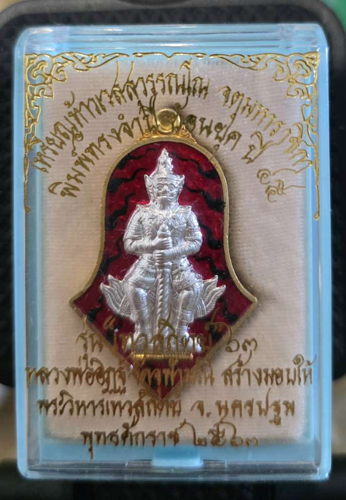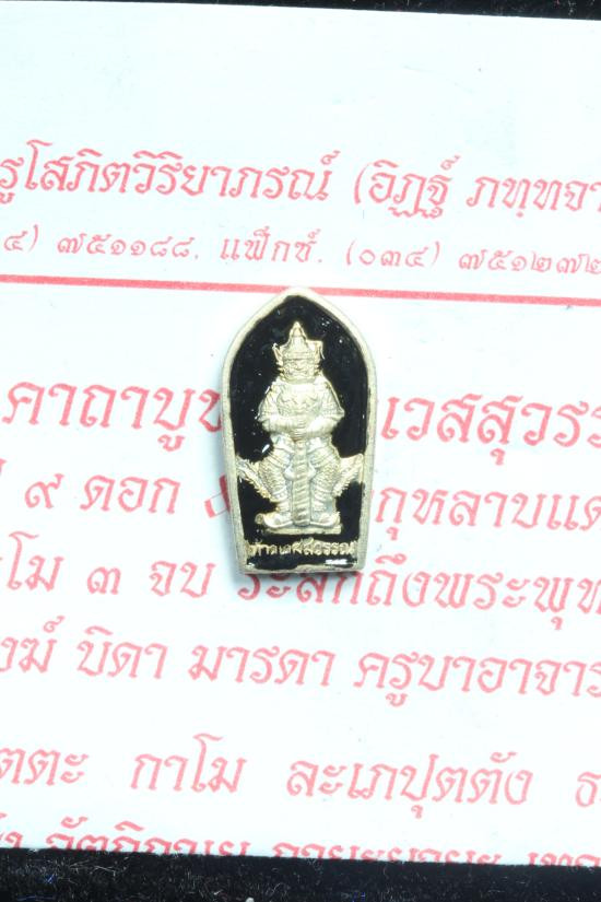 **กะไหล่เงินลงยา เคาะเดียว ปรกลงยา **ปรกใบมะขาม ท้าวเวสสุวรรณ หลวงพ่ออิฏฐ์ วัดจุฬามณี รุ่น 4 ปี2563 ///Q31 |