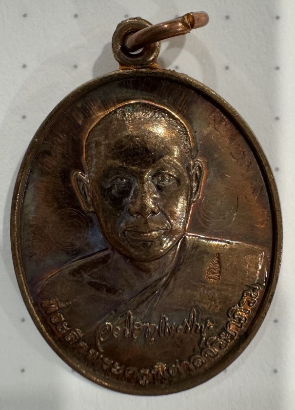 เหรียญรุ่นแรก พระมหาสุรศักดิ์ วัดประดู่พระอารามหลวง เนื้อทองแดง นิยม จาร หน้า-หลัง |