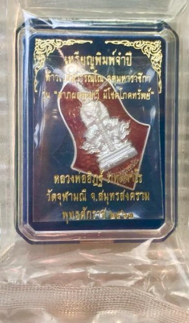 เหรียญจำปีท้าวเวสสุวรรณ พิมพ์เล็ก เนื้อเงิน รุ่นซื้อที่ดินปี 65 เลี่ยมพร้อมใช้ แดงเคาะแรก |