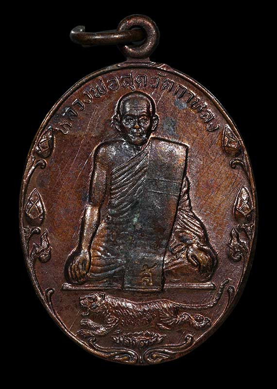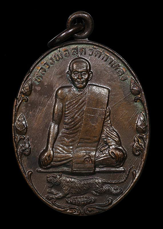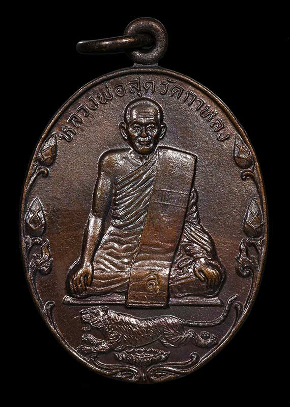 เหรียญเสือเผ่น หลวงพ่อสุด วัดกาหลง ปี 2523 หูขีด วงเดือน เนื้อทองแดง |