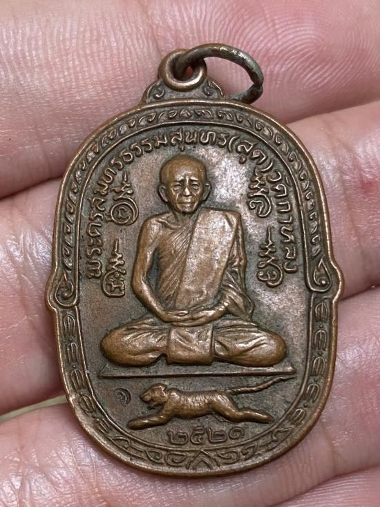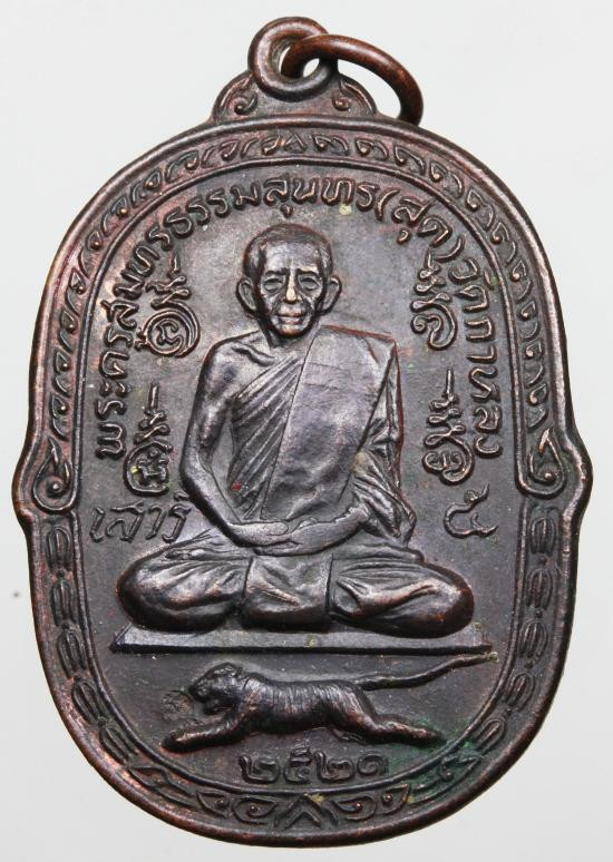 เหรียญหลวงพ่อสุด วัดกาหลง ปี 2521 รุ่นเสือเผ่น พิมพ์หางตรง เนื้อทองแดง จ.สมุทรสาคร |