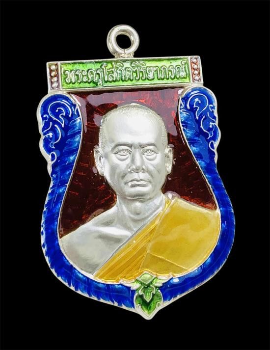 ออกวัด 2,500 เหรียญเสมาหน้าแซยิด หูเชื่อมโบราณ เจริญพร ลาภมาไม่ขาด หลวงพ่ออิฏฐ์ วัดจุฬามณี เนื้อเงินลงยาแดง ลงยาจีวร |