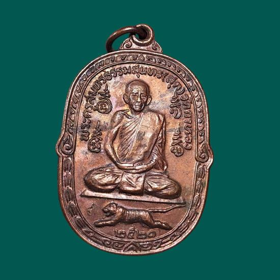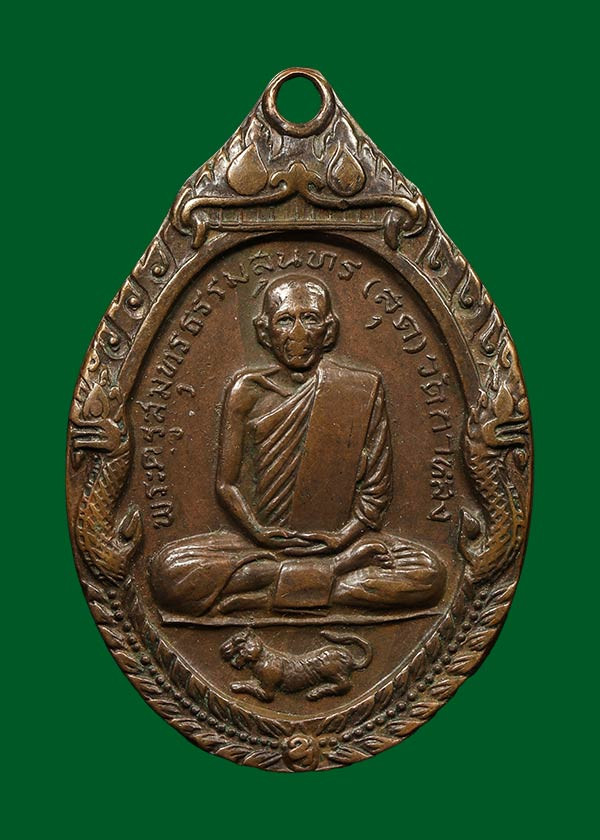 เหรียญหลวงพ่อสุด วัดกาหลง รุ่นเสือเผ่น พิมพ์เสือหางตรง เนื้อทองแดง ปี2521 จ.สมุทรสาคร พร้อมเลี่ยม (ไม่มีทองแล้วครับ) |