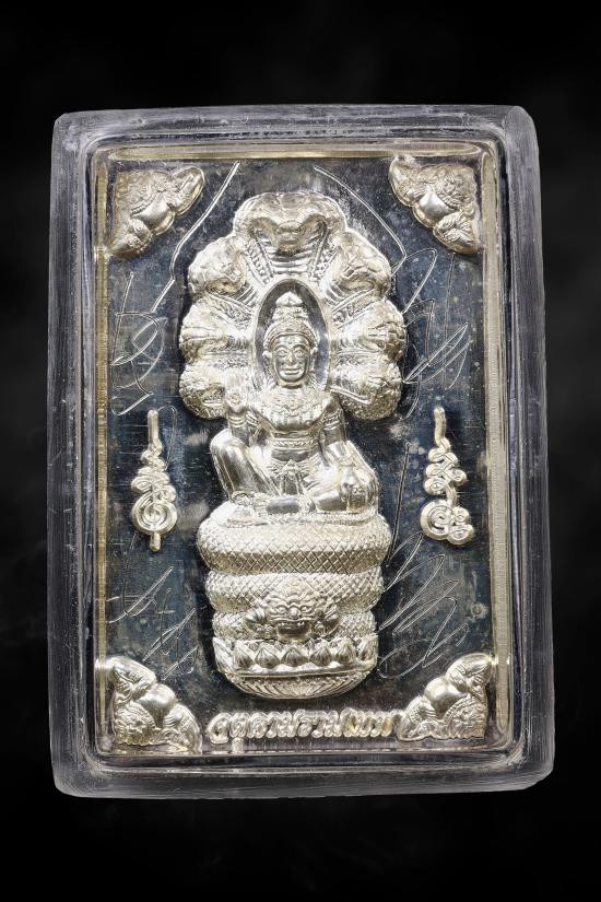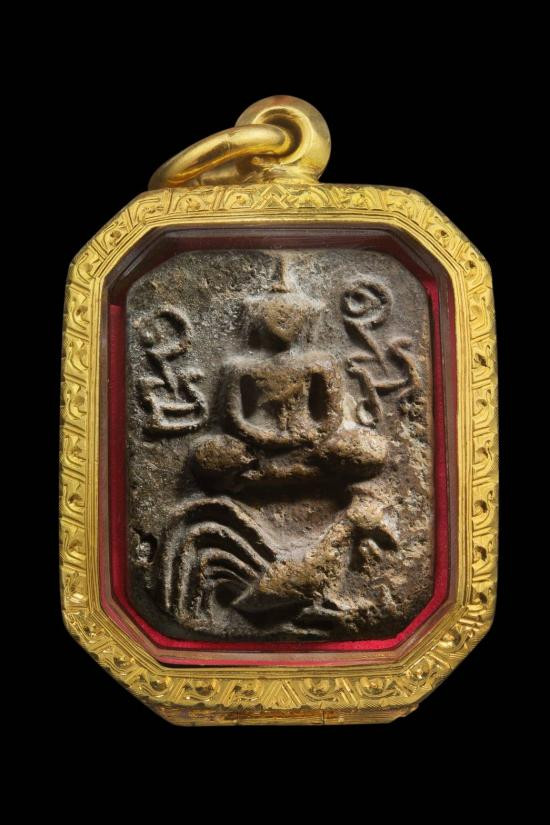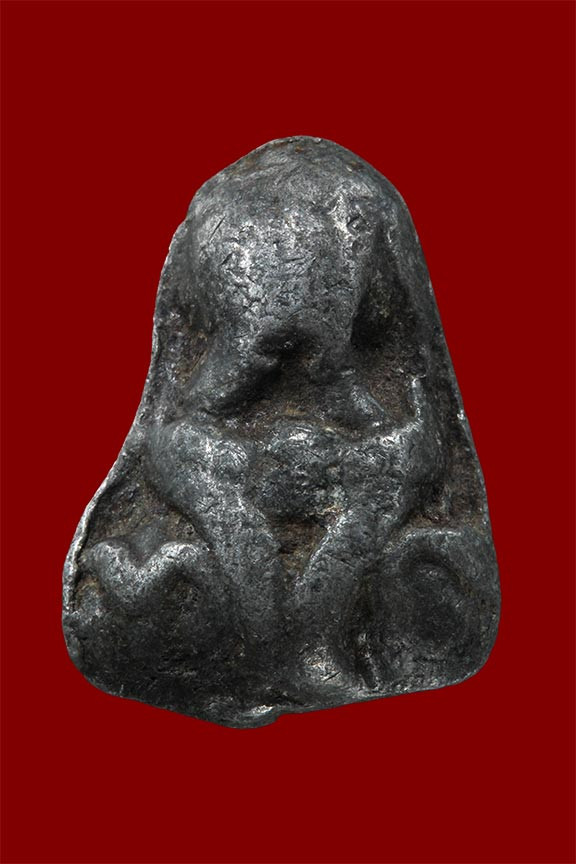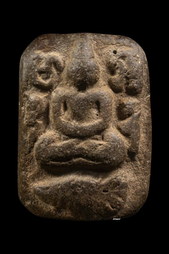 พระขุนแผนผงพรายกุมาร พิมพ์ใหญ่ บล๊อกลองพิมพ์ (บล๊อกหินมีดโกน ) ด้านหลังฝังตะกรุดสาริกาคู่ หลวงปู่ทิม วัดละหารไร่ |