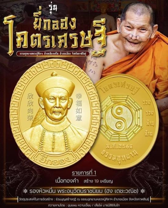 เหรียญหลวงพ่อกวย วัดโฆสิตาราม รุ่น 3 หลังยันต์ไตรสรณคม ตลับทอง 14.28 กรัม |