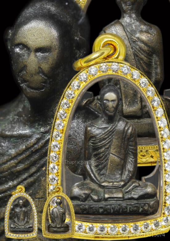 พระรูปหล่อหลวงพ่อเดิม วัดหนองหลวง รุ่นแรก พิมพ์ฐานเตี้ย 2470 เลี่ยมตลับเพชรแท้ครับ |