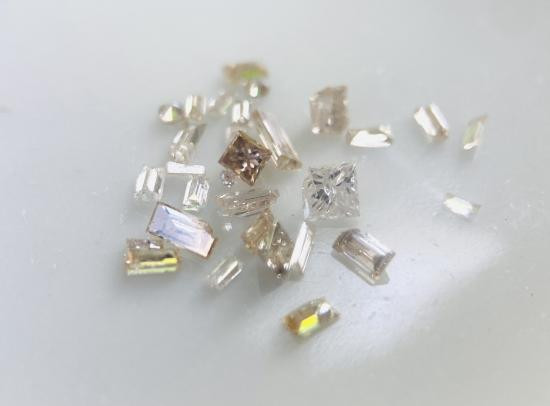 เพชรแท้ธรรมชาติ เหลี่ยมเบลเยี่ยมคัต แกะจากตัวเรือนสินหลุดจำนำ จำนวน 3 เม็ด น้ำหนักรวม 0.18 กะรัต น้ำประมาณ 97 SI VS2 |