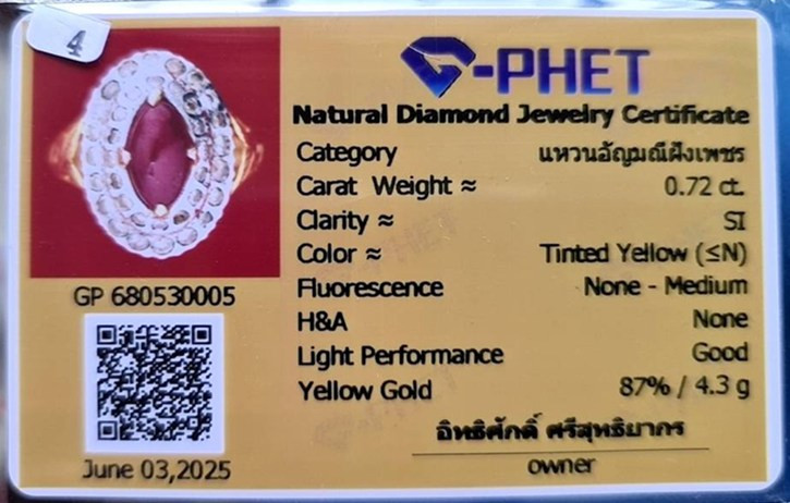 เคาะเดียววัดใจ *แหวนทองฝังเพชรสวยสภาพดี เพชร 6เม็ดรวมกันน้ำหนัก 0.11 ตัง Yellow Gold 75%/6g ไซส์เบอร์ 51(16.3mm) **พร้อมใบเซอร์สถาบัน G-Phet** |