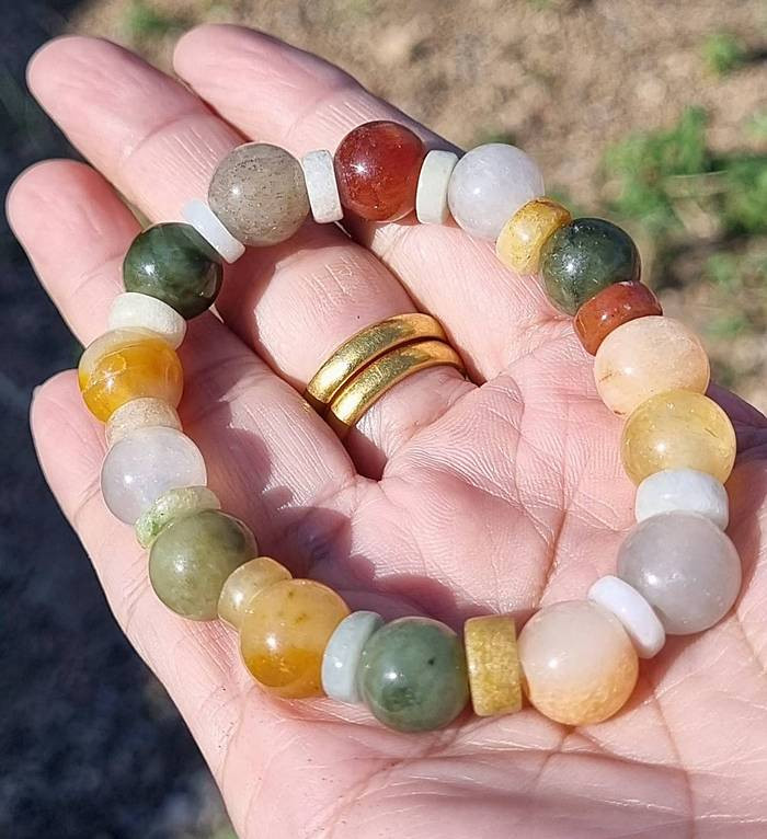 ***วัดใจ***สร้อยข้อมือ หยกพม่าแท้ 5 สี หยกธรรมชาติ |