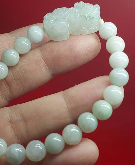 สร้อยขัอมือหยก(พม่า)/ขนาด8มิล/ร้อยยางยืดใส่สบาย/สินค้ามือ1/เส้นที่1 |
