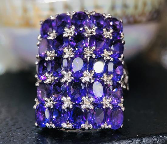 แหวนเงินแท้ 925 เต็มเปอร์เซ็น ชุบพิงคโกล พลอยแทนซาไนท์ |