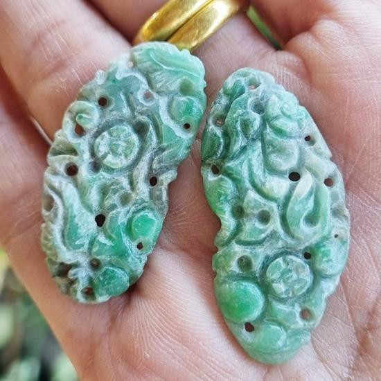 จี้หยกเก่า แกะสลักหน้า - หลัง 2 ชิ้น (เก่าเก็บ ) |