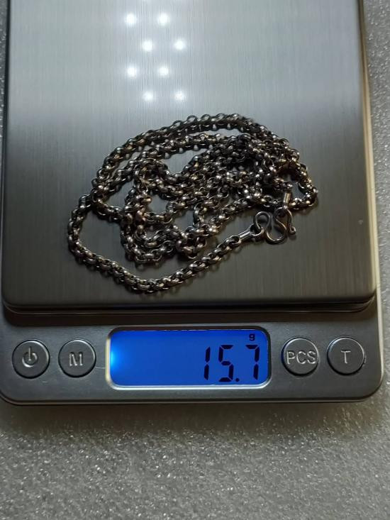 "เคาะเดียว"สร้อยคอเงิน 92.5 มือ 2 สภาพสมบูรณ์ไม่ขาดไม่หักเชื่อมทุกข้อลายแข็งแรง น้ำหนัก 15.7 กรัม |