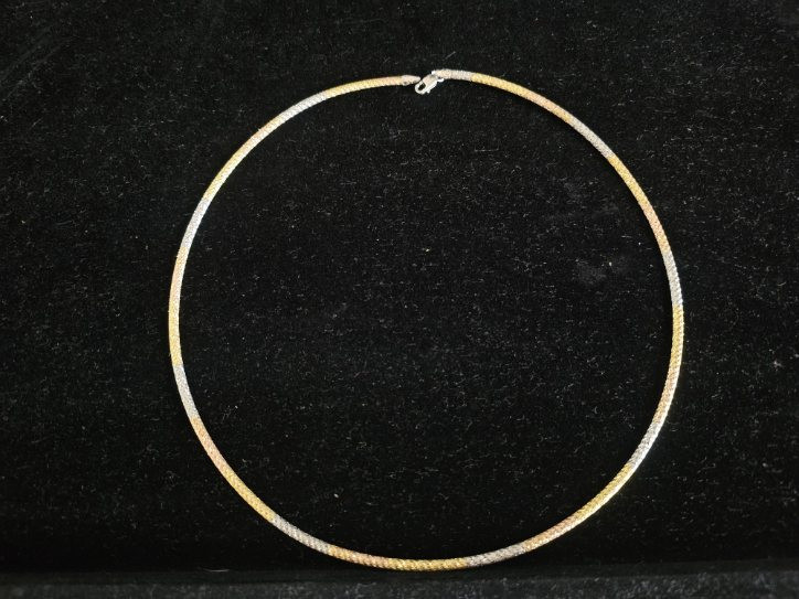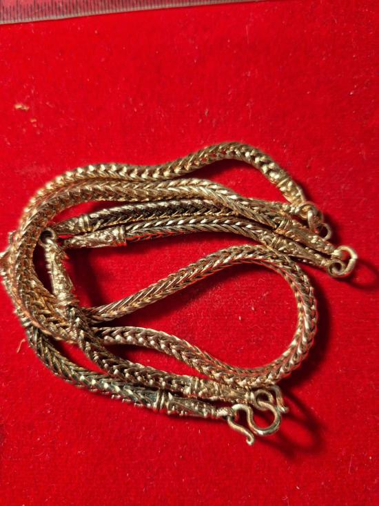 สร้อยนะโมถมเงินถมทอง ความยาว 45 ซ.ม.น้ำหนัก9.58กรัม เงิน78.7%ทอง16.7% สภาพสวย สมบูรณ์ |