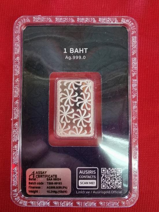 เงินแท่งบริสุทธิ์ 999.9% ขนาด 1 บาท หรือ FINE SILVER 999.9% น้ำหนัก 1 บาท ใหม่ๆเลยครับ |