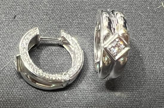 ต่างหูทองคำขาว 18เค แซมเพชรแท้รวมประมาณ 1.05 กะรัต |