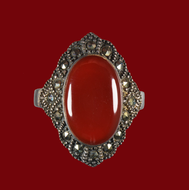 แหวนเนื้อเงินแกะลายโบราณ หัวกระเบน ธรรมชาตสร้าง |