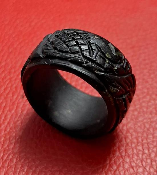 แหวนหยกดำแกะลายมังกร หยกพม่าแท้ 100 % (แสงส่องผ่าน) เส้นผ่าศูนย์กลาง 2.2 ซม. หนา 1.5 ซม. หายากวงใหญ่ๆ ไม่ค่อยได้มาบ่อย ราคาค่อนข้างสูง (กท.23) |