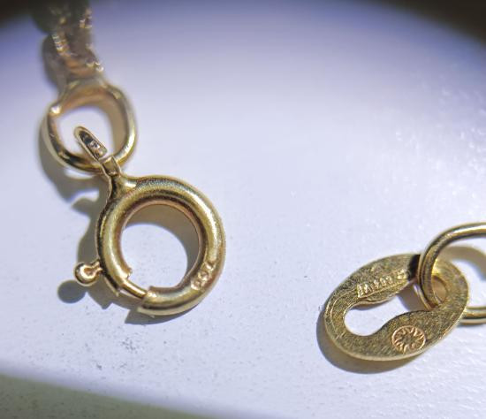 สร้อยทองคำแท้ น.น 1.53 กรัม ตอกโค๊ต 750 ยาว15นิ้ว ซื้อจากต่างประเทศมีแบรนด์แต่จำไม่ได้ว่าแบรนด์ไหน |
