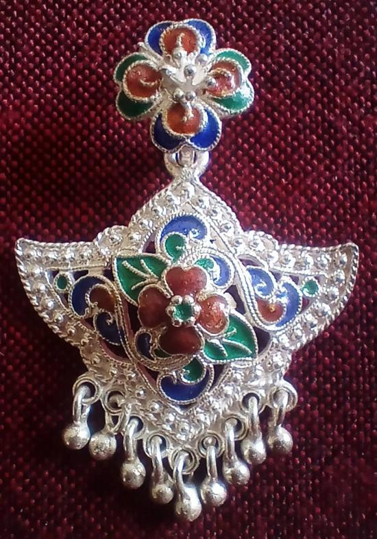 จี้เงินแท้ ลายสวยงามฝังพลอย ขนาดประมาณ 1.5 X 4 ซม น้ำหนัก 5.77 กรัม |