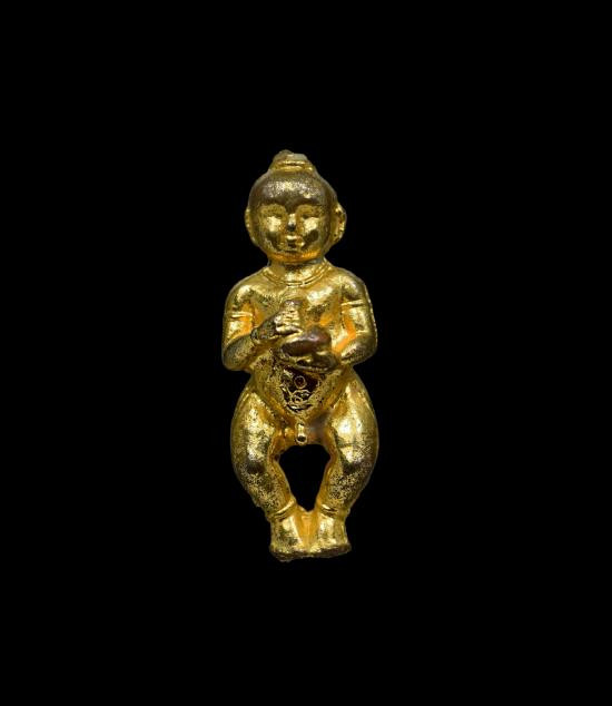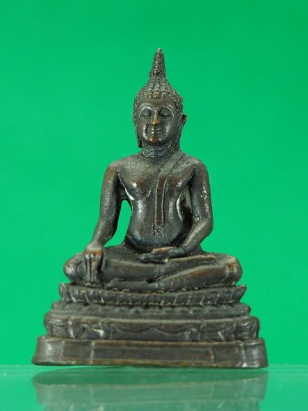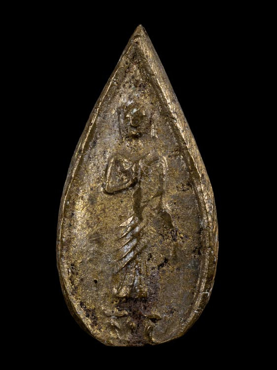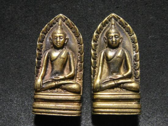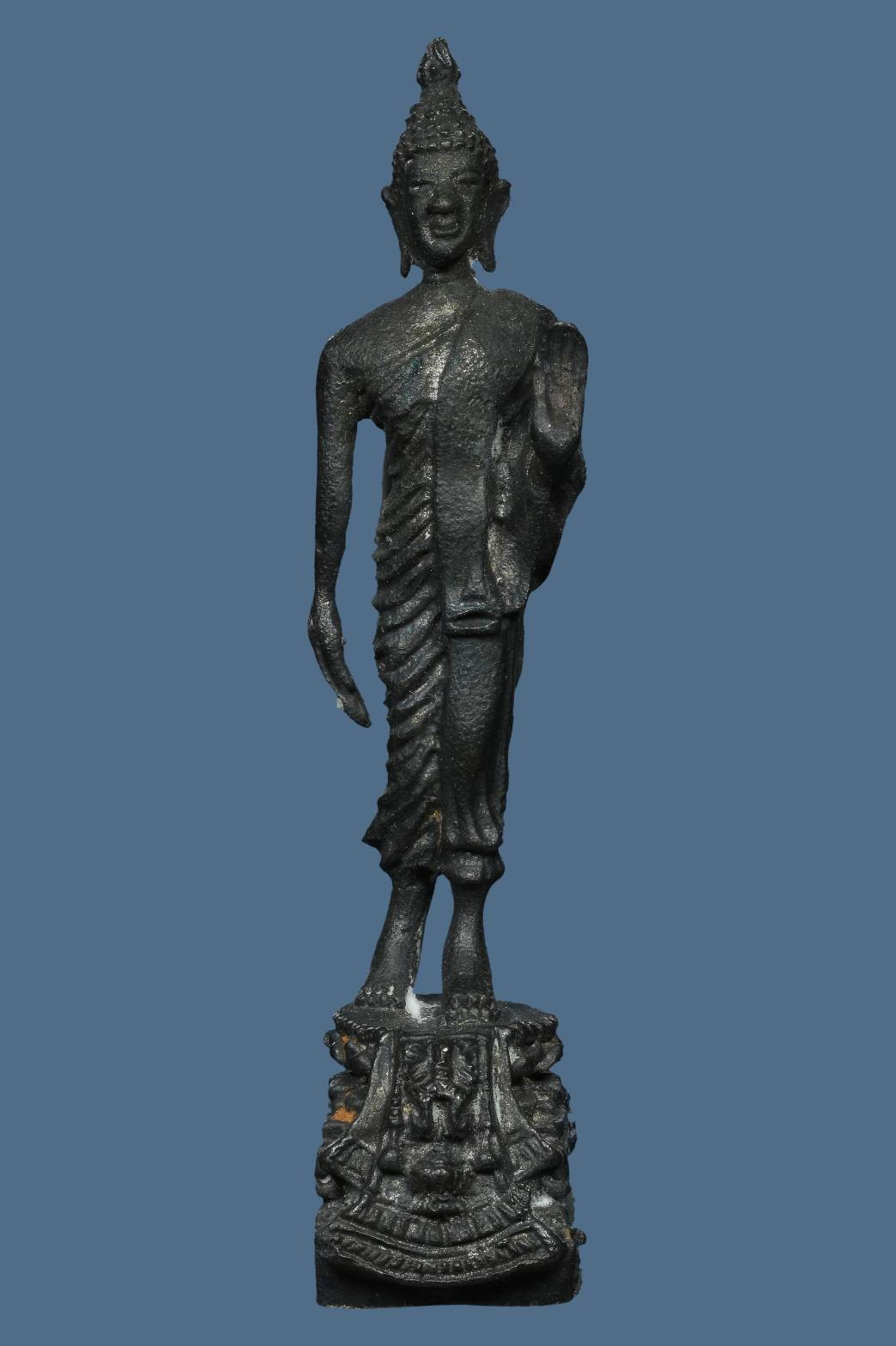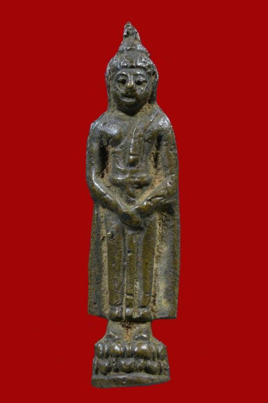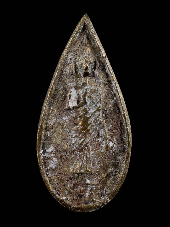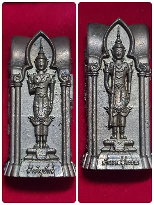 พระลีลา หลวงพ่อโบ้ย วัดมะนาว พิมพ์สองหน้า เนื้อทองเหลือง ปี 2473 จ.สุพรรณบุรี |