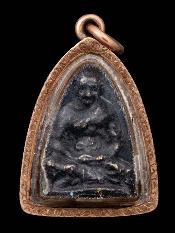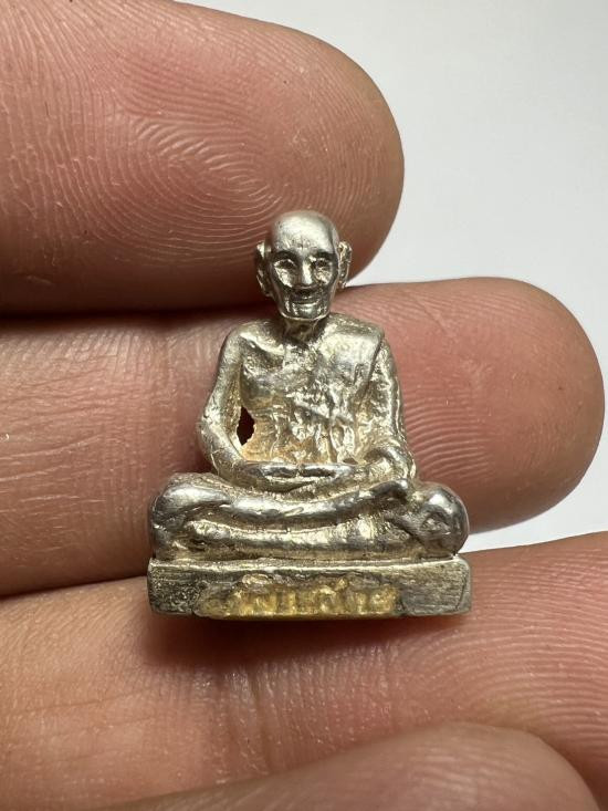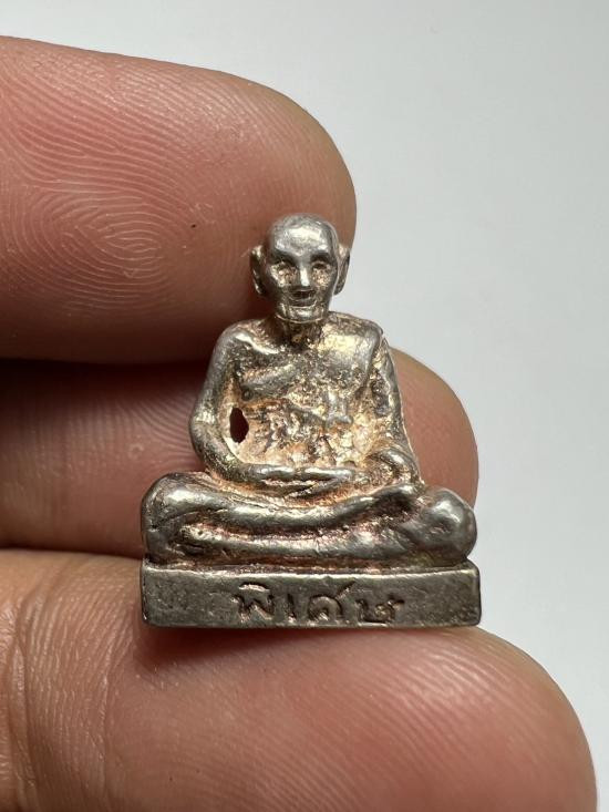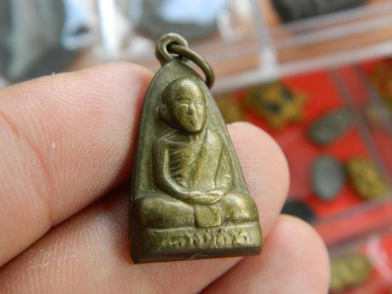 รูปเหมือนหลวงพ่อเงิน วัดคอนยายหอม รุ่นแรก เนื้อทองเหลือง ปี 2500 จ.นครปฐม พร้อมตลับเงินลงยาครับ |