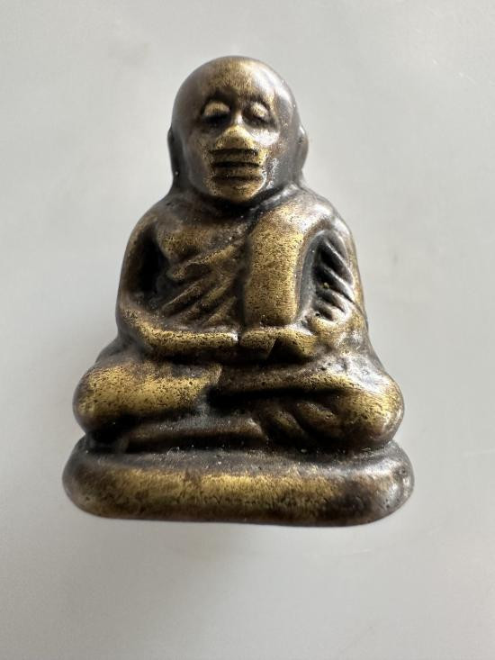 พระรูปเหมือนบรรจุกริ่งหลวงพ่อน้อยวัดคงคารามเนื้อทองเหลืองปี 2500 จังหวัดพิจิตรสภาพเดิมๆไม่ผ่านการใช้ |