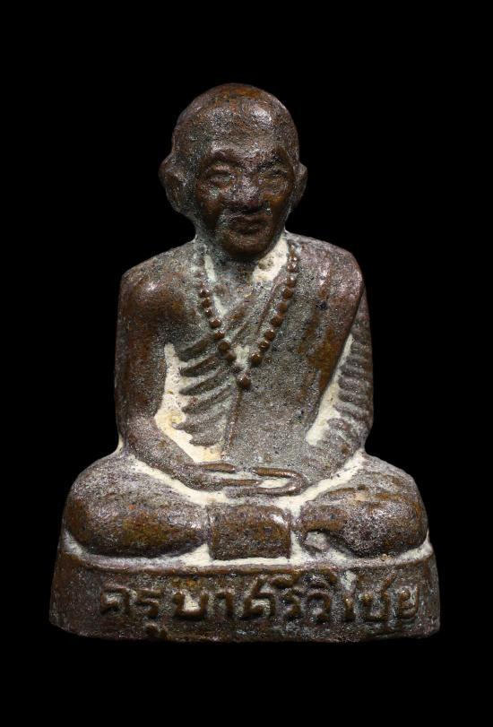 พระรูปเหมือนปั้มครูบาศรีวิชัย วัดพระธาตุดอยสุเทพ จังหวัดเชียงใหม่ จัดสร้างเมื่อปีพ.ศ. 2515 พิมพ์หน้าหนุ่ม เนื้อโลหะผสม ผิวหิ้งเดิม ๆ |