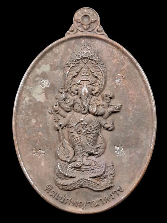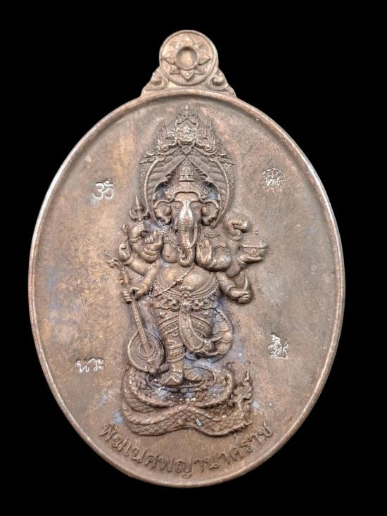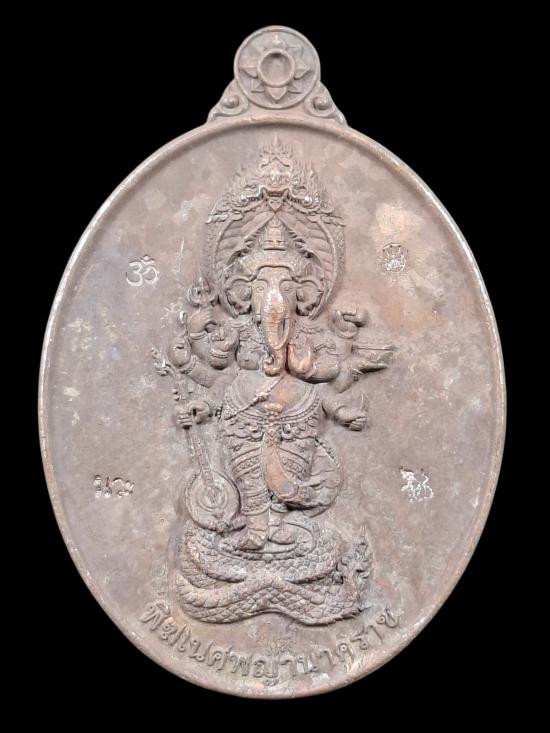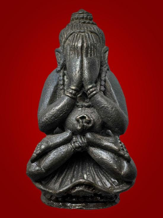 พระพิฆเนศหล่อโบราณ หลวงพ่อชำนาญ วัดบางกุฎีทอง สร้างปี พ.ศ 2546 เนื้อทองแดง ผิวไม่ปัด |