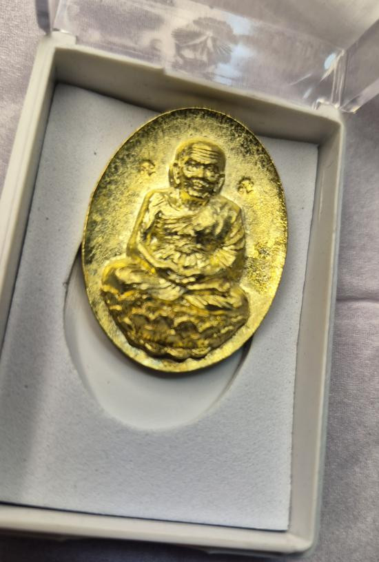 วัดใจ หรียญจอบหลวงพ่อไปล่ ฉันทสโร ออกวัดสิงห์ กรุงเทพมหานคร ปี 2555 เนื้อกระไหล่ทอง สวยเดิมๆ-2 |