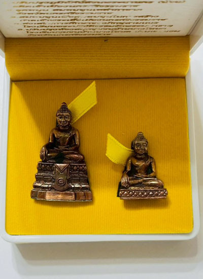 เคาะเดียวแดง รูปเหมือนปั๊ม เสาร์ห้า หลวงพ่อลออ พิมพ์นิ้วกระดก เนื้ออัลปาก้า รวมสององค์ |