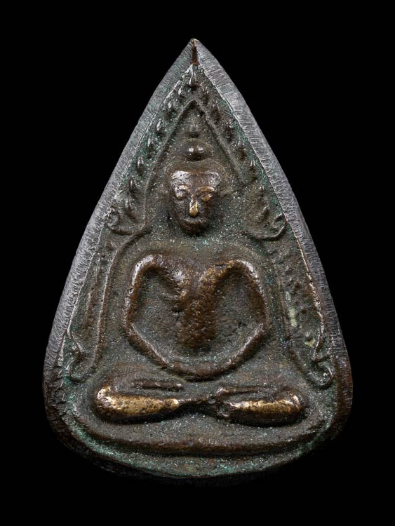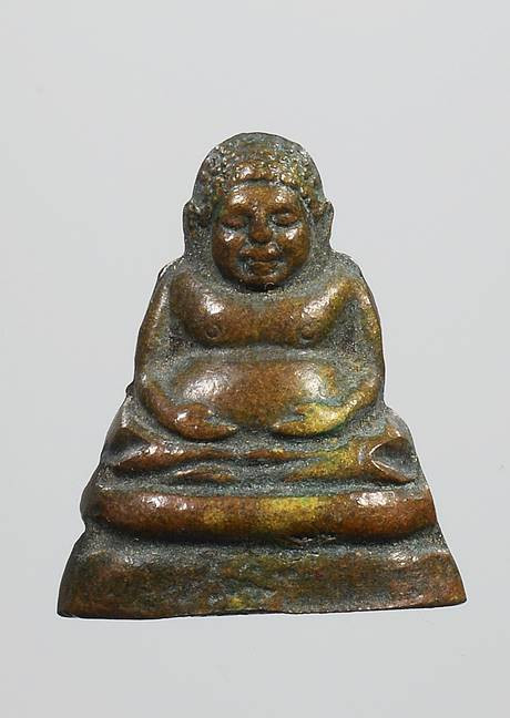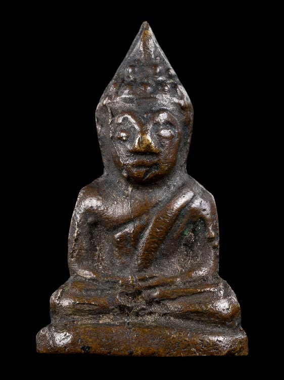 รูปหล่อโบราณ หลวงพ่อทอง วัดสระแก้ว เนื้อทองผสมรมดำก้นอุดกริ่ง |