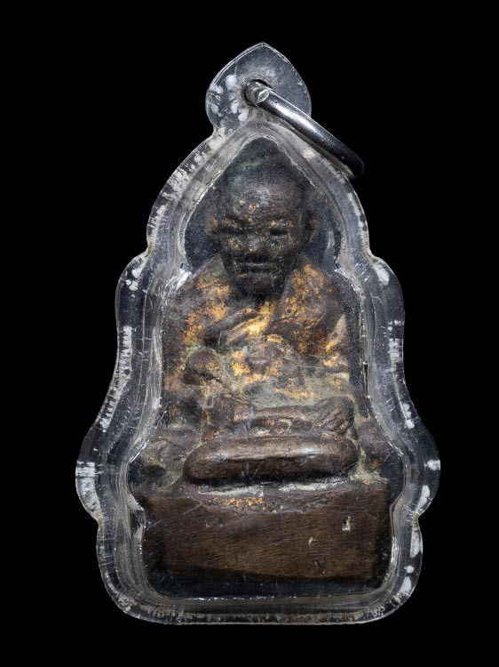 รูปเหมือนหลวงพ่อขอม วัดไผ่โรงวัว พิมพ์หน้าแก่ เนื้อทองเหลือง ปี ๒๕๐๕ จ.สุพรรณบุรี |