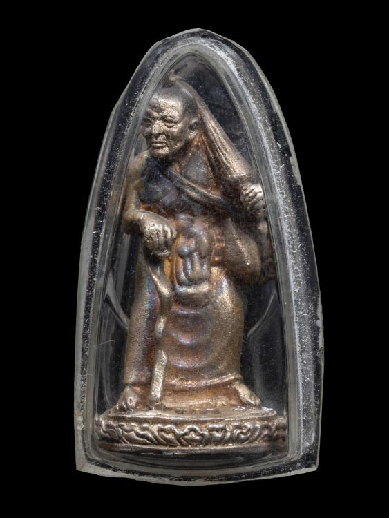 หลวงปู่ทิม วัดพระขาว พระสังกัจจายน์ลอยองค์ เนื้อทองแดงรมดำ ปี 43 |