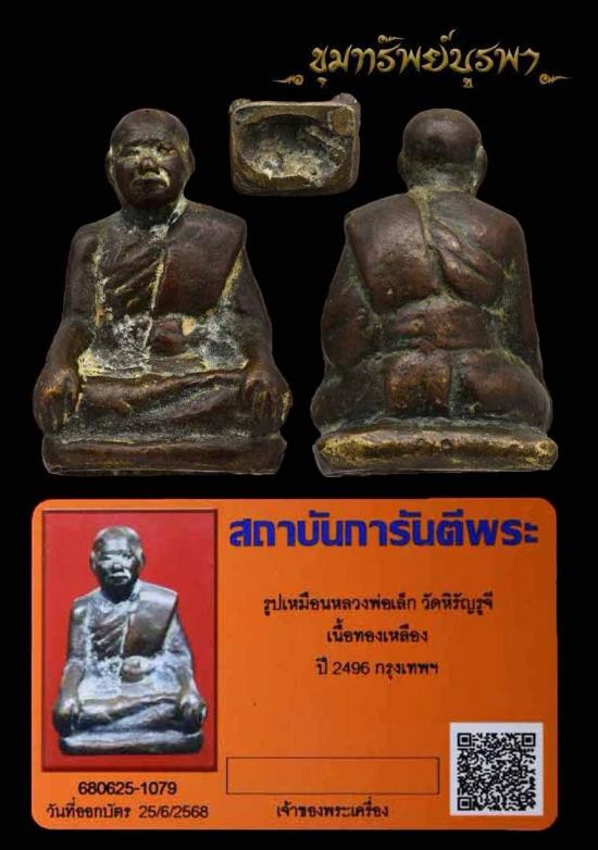 รูปหล่อหลวงปู่หลิว วัดไร่แตงทอง รุ่นกองทัพบกสร้าง เนื้อนวะโลหะ ปี2539 พร้อมบัตรและกล่องเดิม+บัตร |