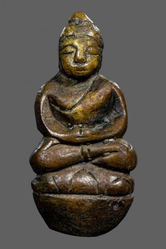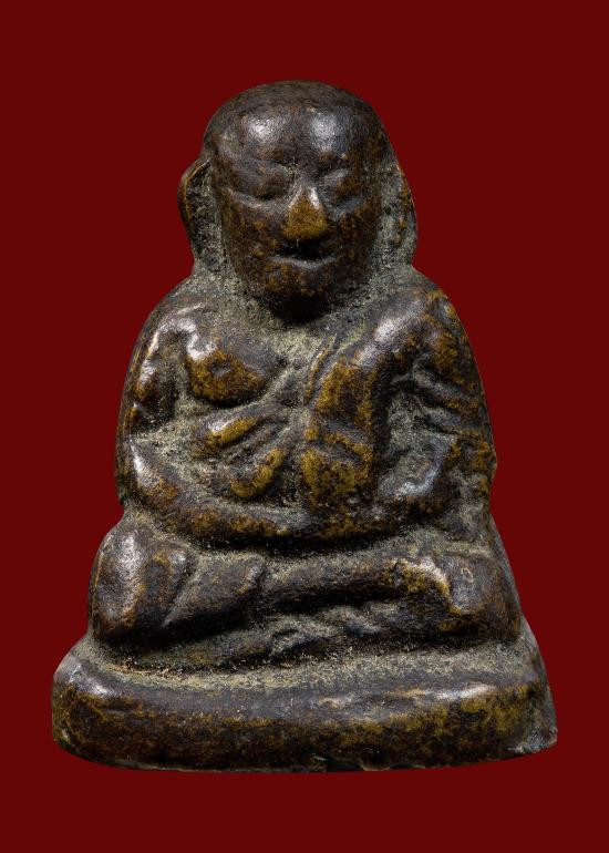 รูปหล่อโบราณ ลพ.มุม วัดประสาทเยอร์ เนื้อทองผสมรมดำ ก้นจาร |