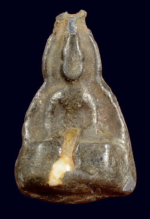 พระหล่อโบราณ เนื้อโลหะผสม หลังยันต์ หลวงพ่อปลื้ม วัดอุดมธานี พ.ศ.2489 |