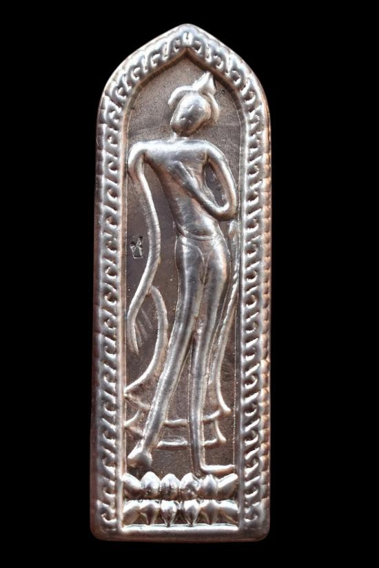 พระรูปหล่อลอยองค์ เนื้อเงิน พระปางลีลาพุทธมณฑล รุ่น สก. |