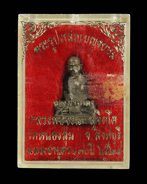วัดใจเคาะเดียว.......150.......รูปหล่อปั้มรุ่นแรก หลวงพ่อถม วัดเชิงท่า จ.ลพบุรี ปี2539 ตแกโค๊ต สวยคากล่องเดิม |