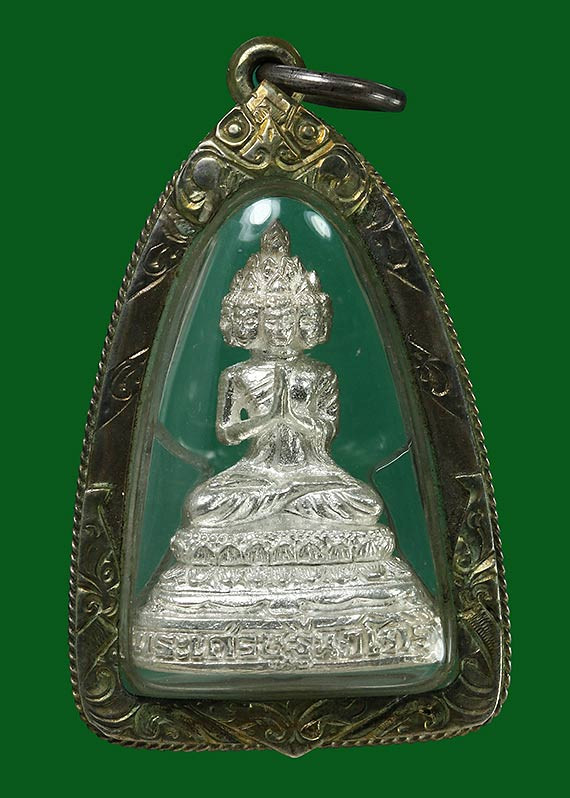 วัดใจ 100 รูปหล่อหลวงพ่อเงิน เลี่ยมจับกระเช้าเงินเก่า น้ำหนัก 9.15 กรัมไม่ทราบที่ เคาะเดียวแดง |