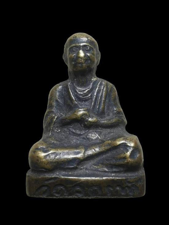 รูปเหมือนหล่อลอยองค์ หล่อตัน หลวงปู่ศรี ฐิตธัมโม วัดหลวงสุมังคลาราม จ.ศรีสะเกษ เนื้อทอแดงรมดำ ตอกโค๊ต |