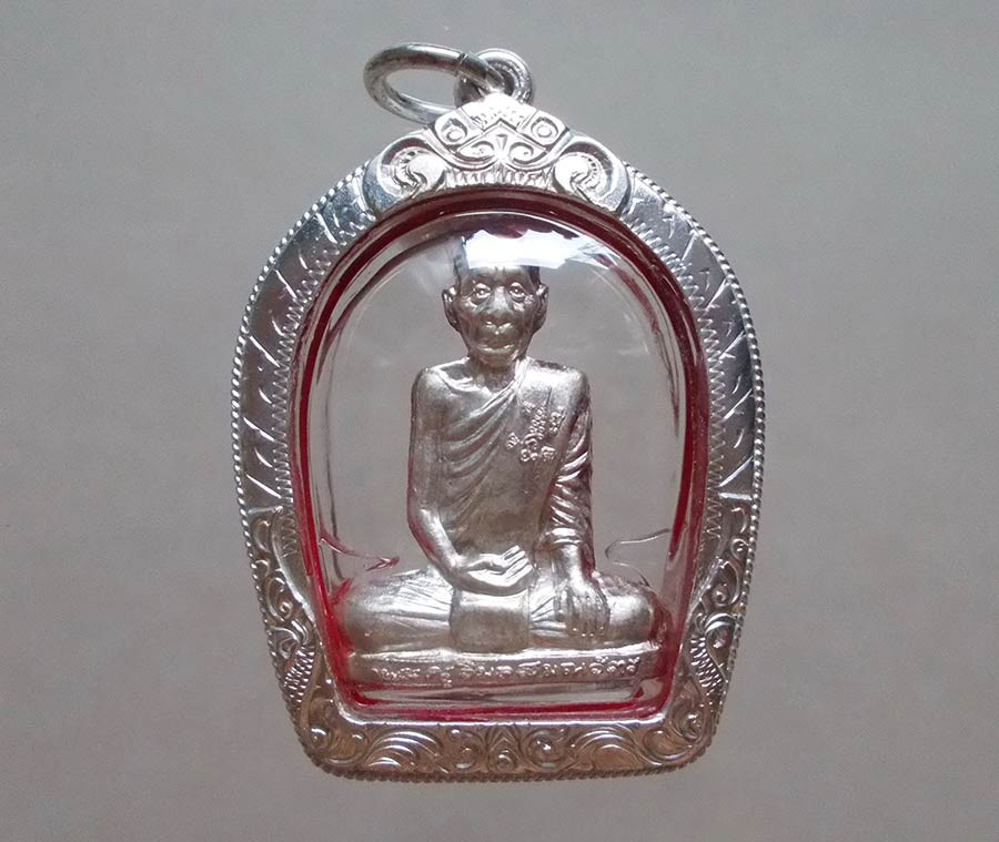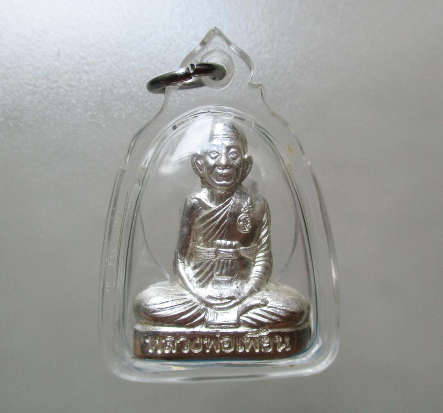 รูปเหมือนปั้ม รุ่นเพชรกลับ หลวงพ่อเพี้ยน วัดเกริ่นกฐิน จ.ลพบุรี ไตรมาส พ.ศ.2555 เนื้อเงิน ตอกโค๊ต ตอกเลข เลี่ยมกรอบเงินยกซุ้มสวยมาก !! |