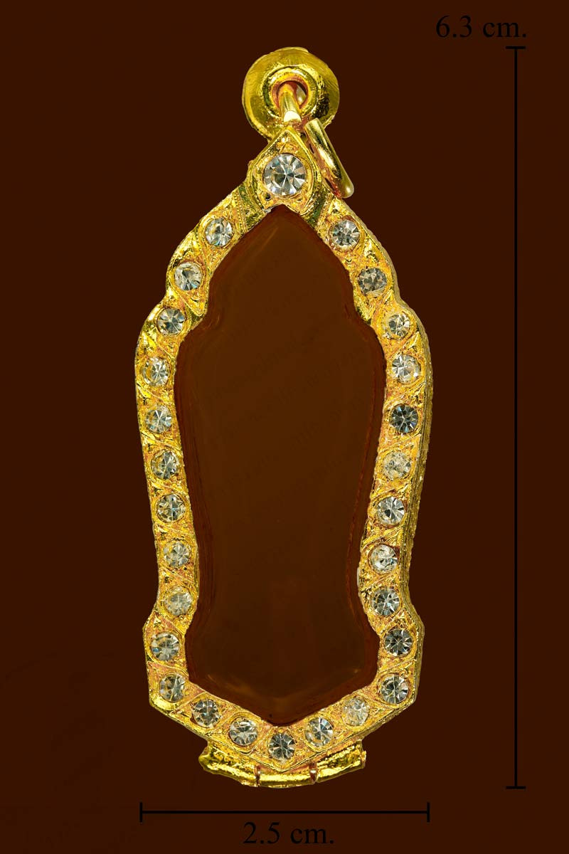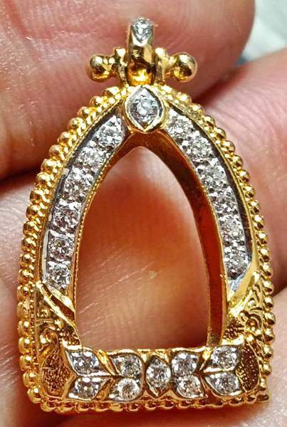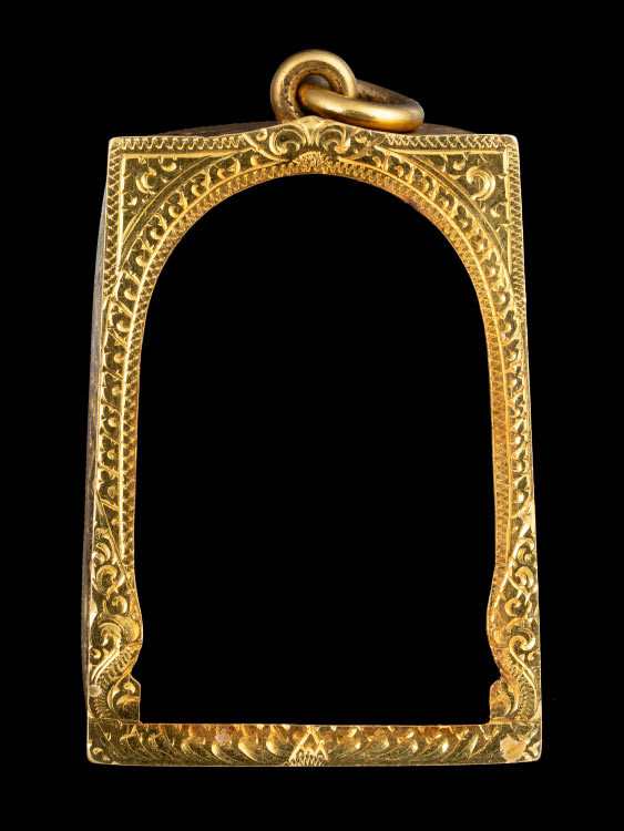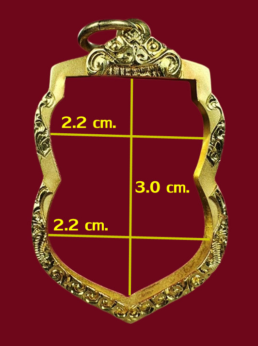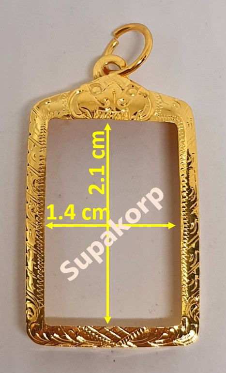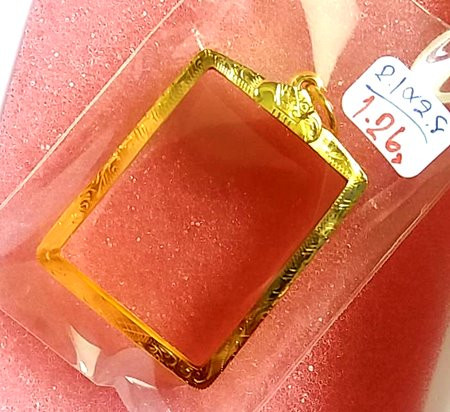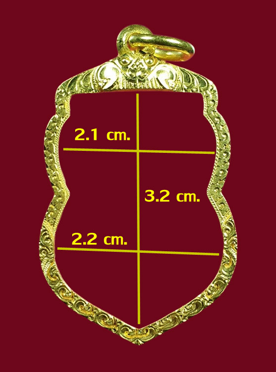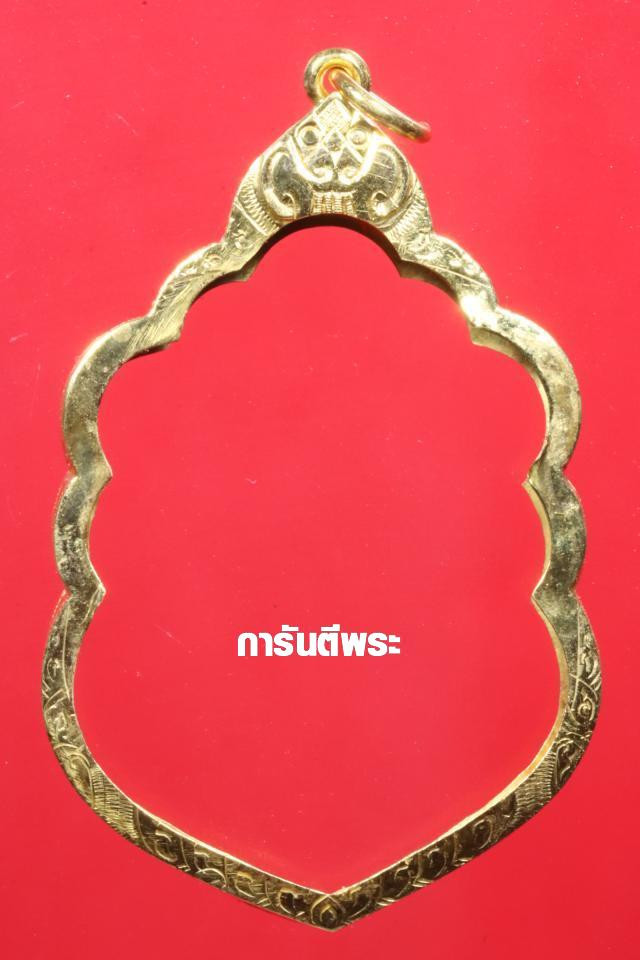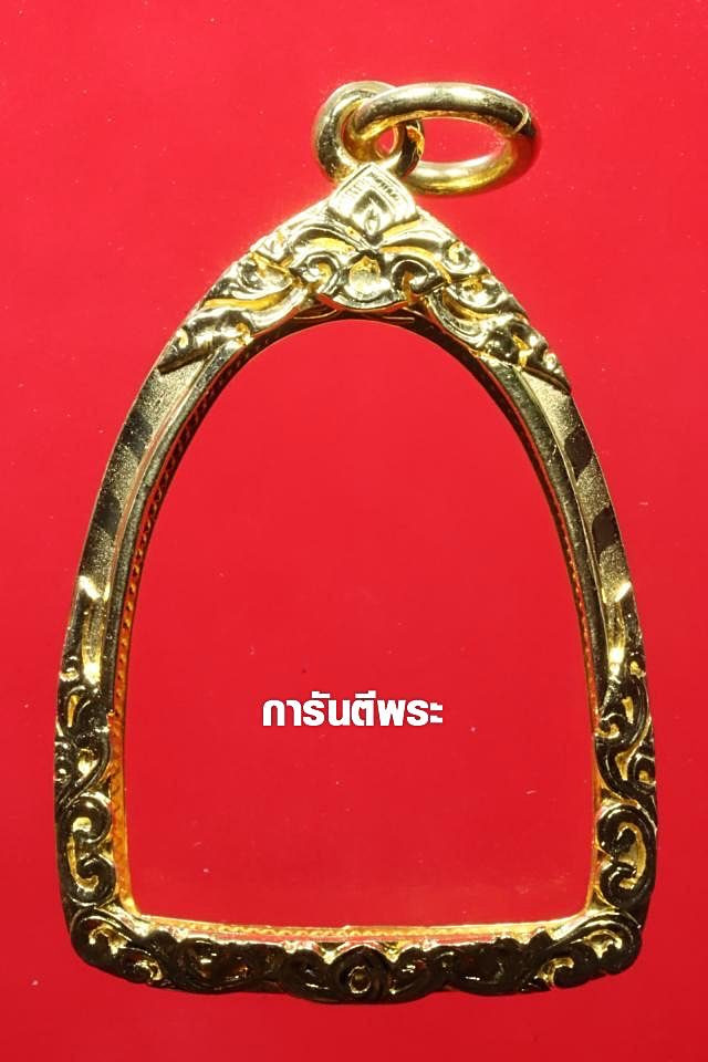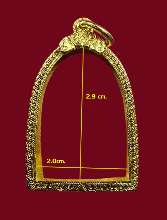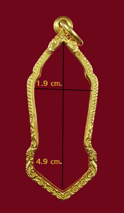 กรอบทองคำแท้ ทรงเหรียญรูปไข่ ยกซุ้มหัวสิงห์ น้ำหนักประมาณ 5.9 กรัม เปอร์เซ็นสูง 83.88% |