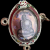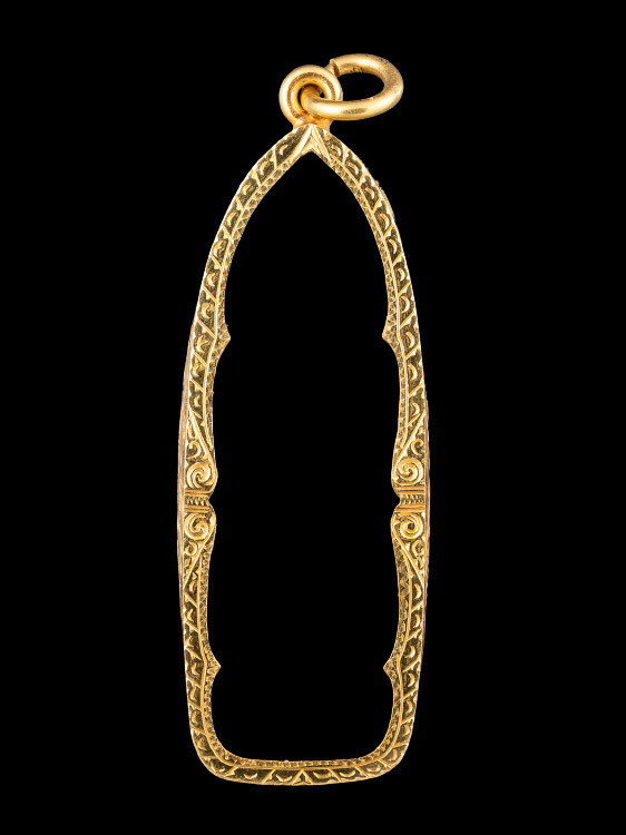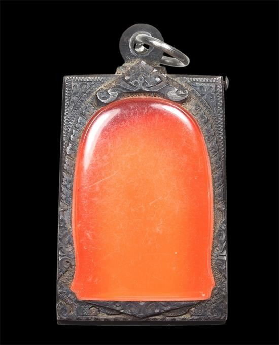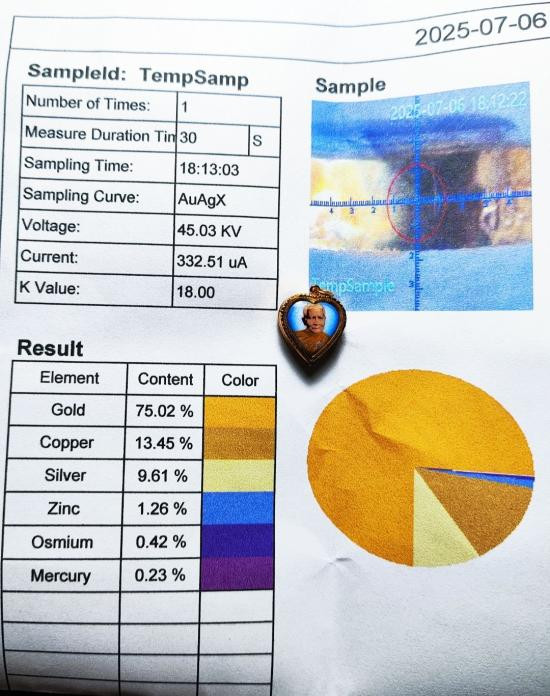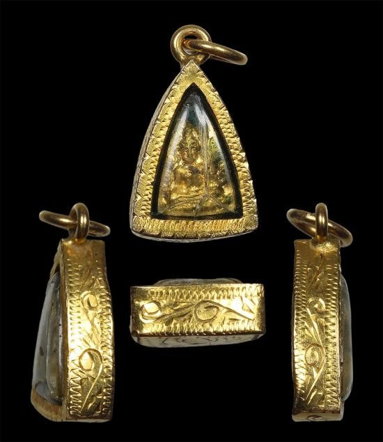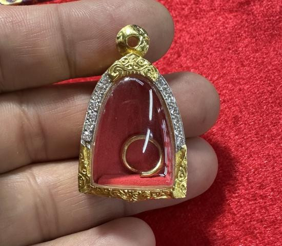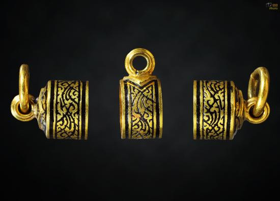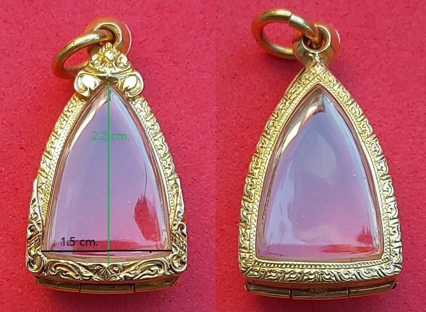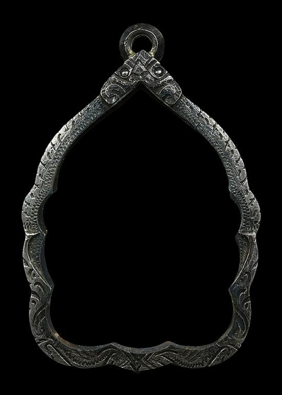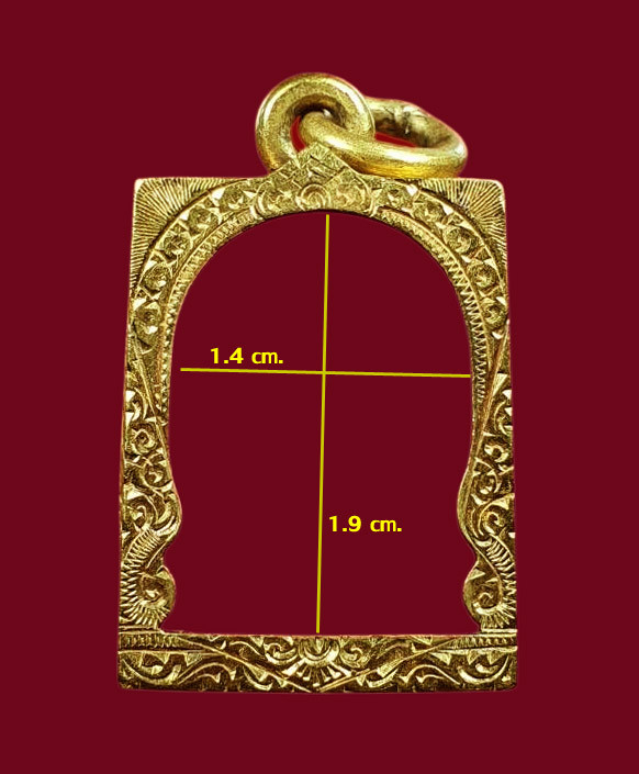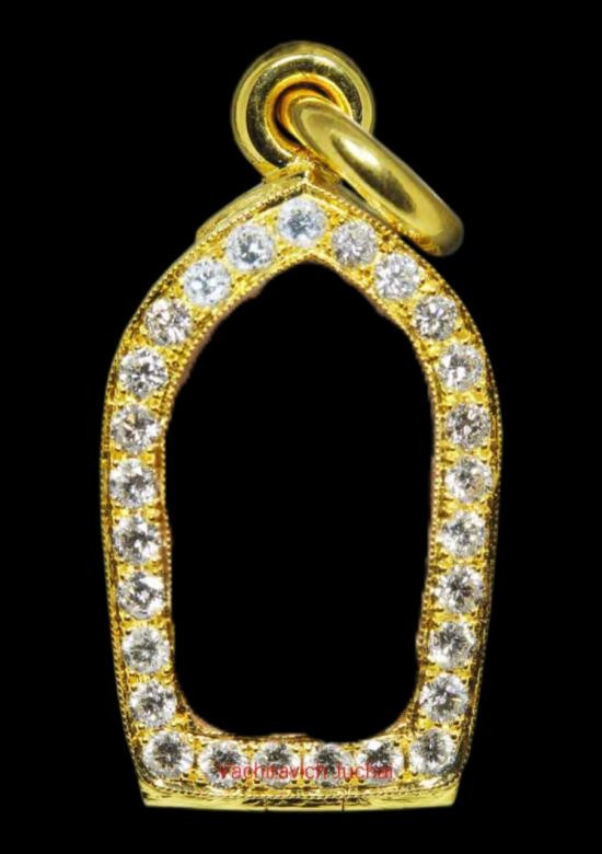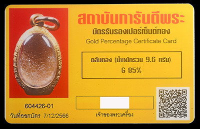 กรอบทองคำแท้ ทรงเหรียญรูปไข่ ยกซุ้มหัวสิงห์ น้ำหนักประมาณ 5.9 กรัม เปอร์เซ็นสูง 83.88% |