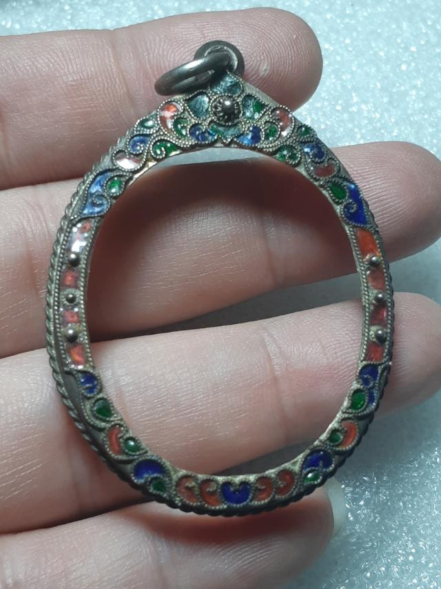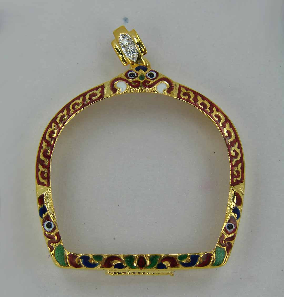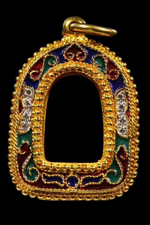 กรอบเงินชุบทองลงยา สำหรับพระกริ่ง เงินแท้ 93 % ครับ |