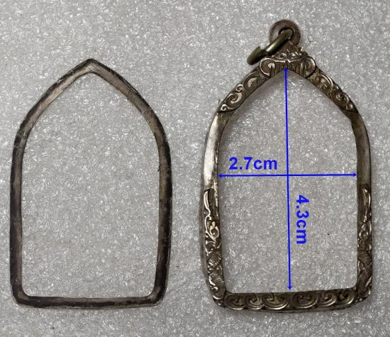 กรอบเงินแท้ สั่งตัดใส่เศียรพ่อแก่ทั่วไป หลวงปู่กาหลง ขนาดกรอบนอก 4 ซม.สูง 6.3 ซม.หัวสิงห์ใหญ่หนาหนัก 6.10 กรัม สวยครับ |