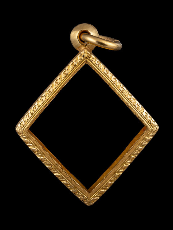 กรอบทองคำแท้ยกซุ้มสิงห์ ใส่เหรียญเม็ดแตงหลวงปู่ทวด/หลวงพ่อรวย/หลวงปู่หมุน//ล๊อคเก๊ต/เกจิอื่นๆจอใน1.3+1.7ซม..น้ำหนัก 0.75 กรัม |