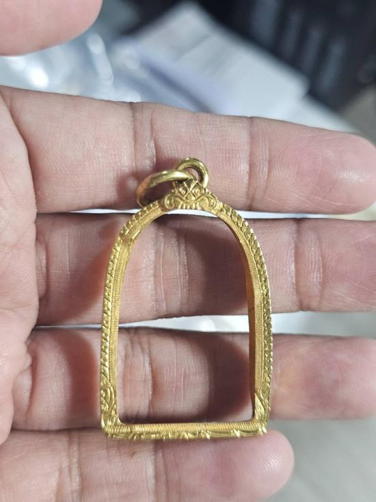 **ไม่ออกบัตรลด500บาท**กรอบทองคำแท้ยกซุ้มสิงห์ ใส่พระพุทธชินราชอินโดจีน/กริ่ง//ที่มีขนาดใกล้เคียงจอในกว้าง2.6ซม.สูง4.5ซม.พระกริ่งที่ใส่ต้อง2.4+3.3น้ำหนัก 1.66กรัม |
