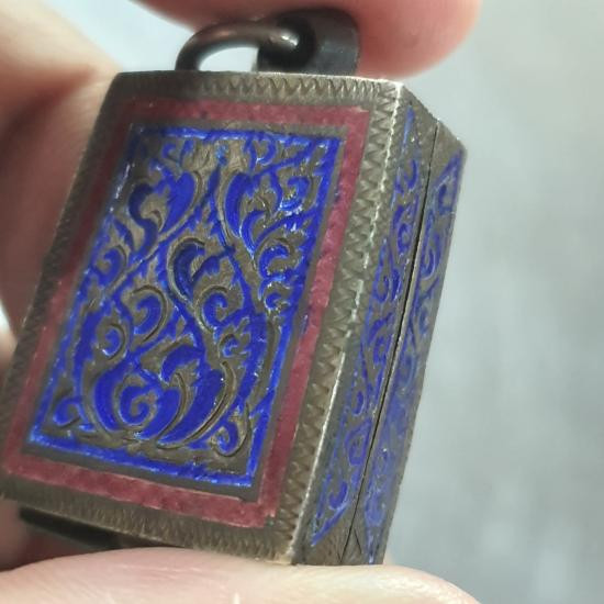 วัดใจ////เคาะเดียวตลับเงินเก่า งานแกะมือ สวยเดิม บานพับแน่นๆด้านข้างปิดสนิทใส่นางพญา ไม่มีกระจกพลาสติก น้ำหนัก 11.4 กรัม |
