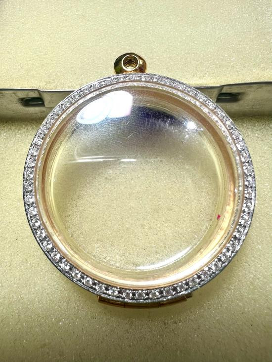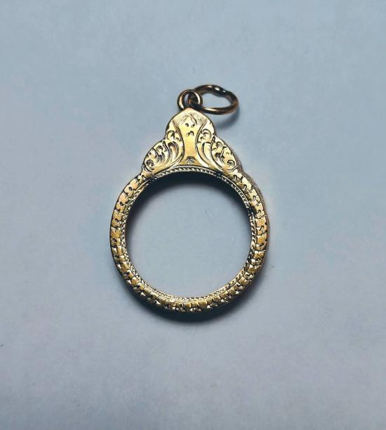 กรอบทองคำแท้ มือสอง ทรงกลม หนาๆ สวยงาม %ดีมาตรฐาน สำหรับ พระเกจิคณาจารย์ทั่วไป หรือใกล้เคียง + บัตรรับรอง G-Pra |